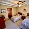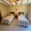 Two of the rooms have single beds, while one triple room offers a large double bed and an additional sofa bed. It also has four full bathrooms.